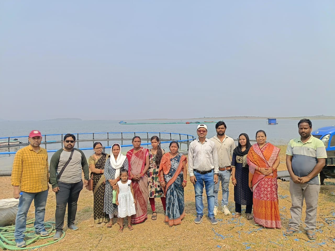A major turning point in her journey came through the scientific support and capacity-building initiatives of ICAR-Central Inland Fisheries Research Institute, in collaboration with the Department of Fisheries, Government of Odisha. A series of structured training programmes on “Cage Culture in Reservoirs” were conducted at Sambalpur in two phases—benefiting nearly 400 participants, among whom Smt. Sujata Bhuyan was one. Trainings integrated theory with practical exposure—focusing on scientific fish stocking, water quality management, feed optimization, disease control, and overall cage operations. Hands-on demonstrations and field-based learning, supported by comprehensive training manuals, ensured that participants gained both knowledge and confidence to adopt improved aquaculture practices.