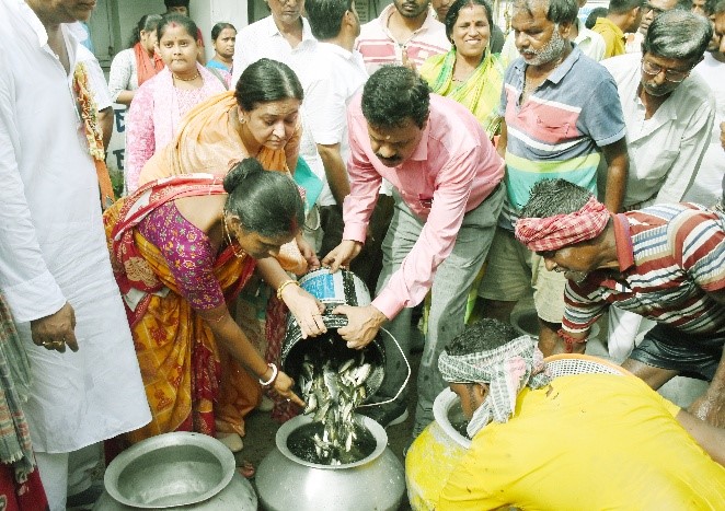 Dr. Pranaya Parida and Mr. Pranab Gogoi scientist of ICAR-CIFRI addressed the gathering and informed about scientific fish farming.