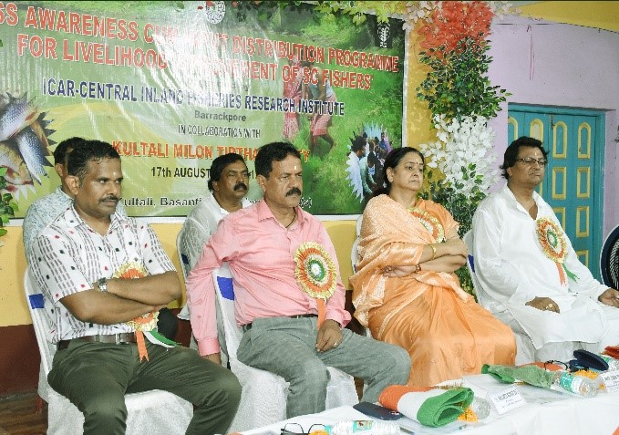 In a meaningful stride toward empowering marginalized communities in the Sundarbans and sustainable fisheries livelihood, the ICAR-Central Inland Fisheries Research Institute (ICAR-CIFRI), Barrackpore, organized an input distribution and awareness programme on 17 August 2025 at Kultoli, Sundarbans, West Bengal. The awareness programme was conducted under the Scheduled Caste Sub Plan (SCSP), the initiative aimed to promote backyard pond culture as a sustainable livelihood option for Scheduled Caste especially for women in the region. The programme was held in collaboration with Kultali Milan Tirtha Society (KMTS), a local NGO committed to grassroots development.