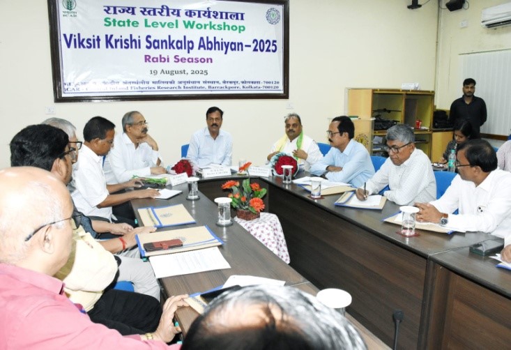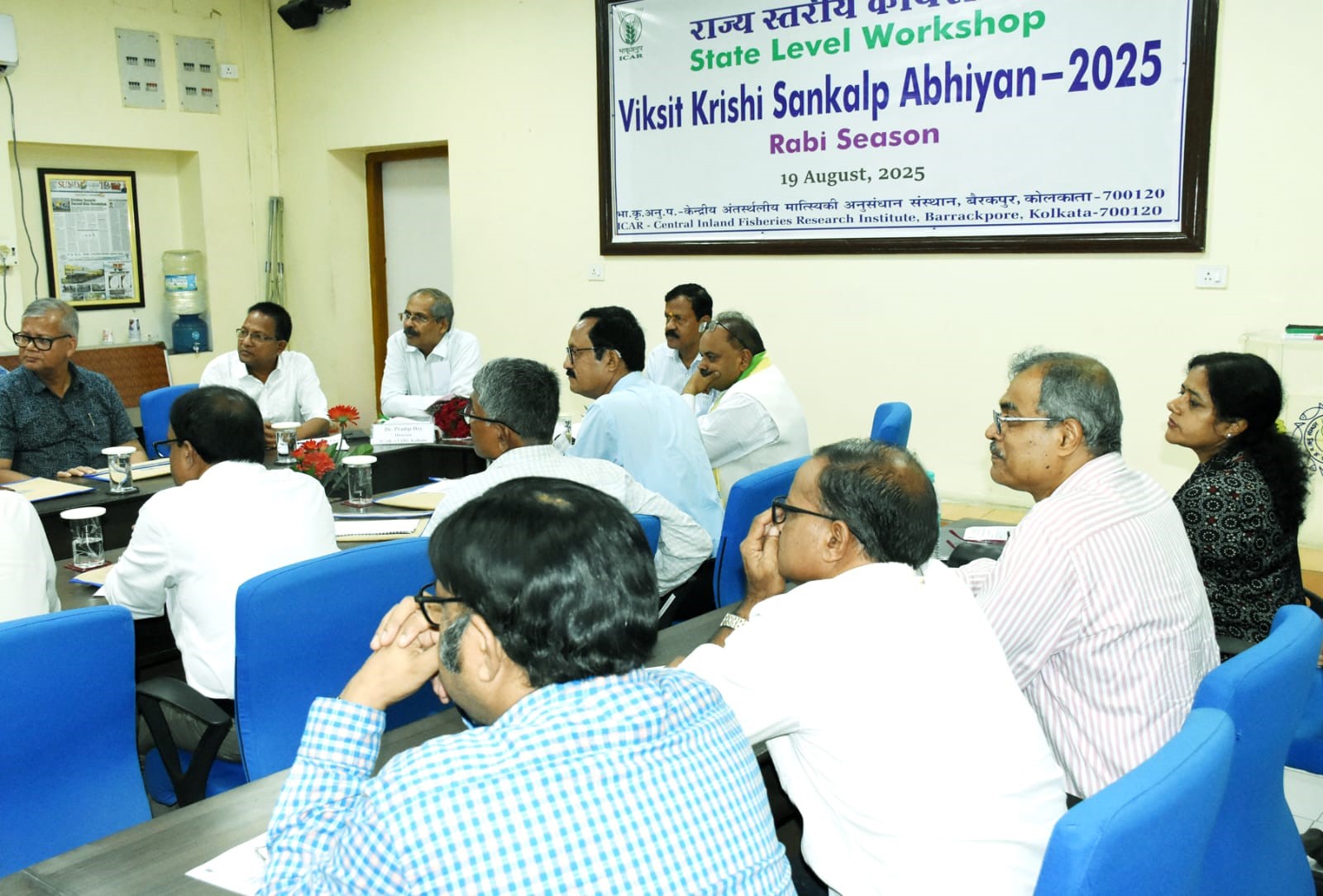 A State-Level workshop on Viksit Krishi Sankalp Abhiyan (VKSA) for Rabi Season Campaign was organised today at ICAR-Central Inland Fisheries Research Institute, Barrackpore. VKSA is a nationwide initiative dedicated to shape the future of Indian agriculture and empower our farmers towards the vision of Viksit Bharat@2047.” The Government of India has envisaged Viksit Krishi Sankalp Abhiyan as a mission to strengthen agricultural policies, enhance productivity, ensure farmers’ prosperity, and promote sustainable farming practices.