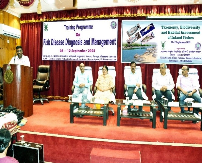 ICAR-CIFRI successfully organized a training programme on “Taxonomy, Biodiversity, and Habitat assessment of Inland Fishes” at Barrackpore during 8-12 September 2025, to address the research constraints and potential challenges in fish biodiversity research of Indian inland waters. In the inaugural session, Dr. B. K. Das, Director of ICAR-CIFRI, underscored the critical need of monitoring inland fish diversity for the sustainable management of these resources and stressed the relevance of field-oriented training in fish and shellfish taxonomy.