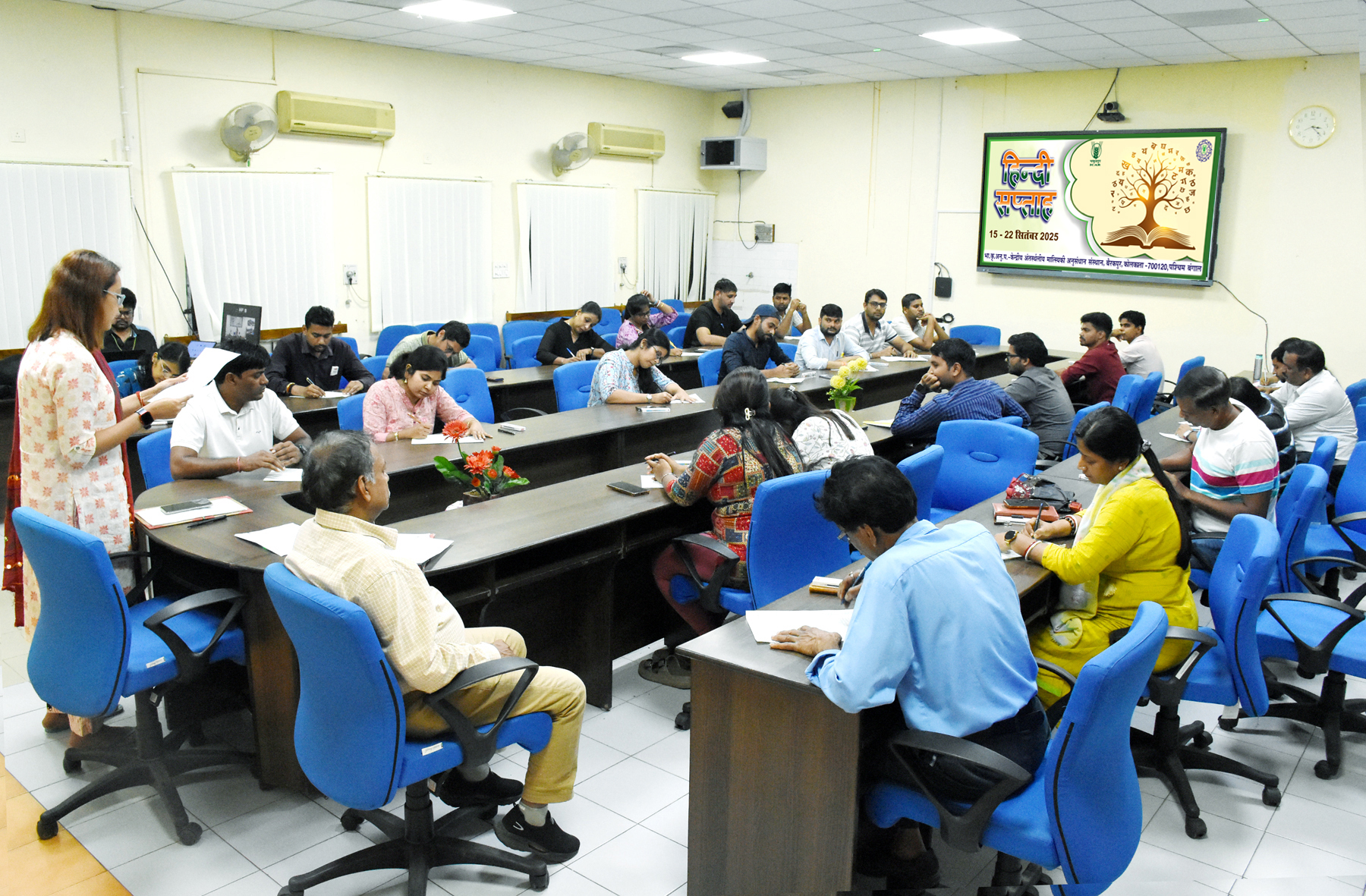 भाकृअनुप-केन्द्रीय अन्तर्स्थलीय मात्स्यिकी अनुसंधान संस्थान में हिन्दी सप्ताह दिनांक 15 से 22 सितंबर 2025 के बीच मनाया जा रहा है। इसका उद्घाटन दिनांक 15 सितंबर 2025 को संस्थान मुख्यालय में किया गया। इस समारोह में सबसे पहले राजभाषा प्रतिज्ञा ली गई। संस्थान के प्रभागाध्यक्षों ने हिन्दी के प्रयोग और प्रसार-प्रचार के साथ भावी लक्ष्य के लिए सुझाव दिए। मुख्य प्रशासनिक अधिकारी ने राजभाषा अनुपालन को एक सांविधानिक दायित्व के रूप में परिभाषित किया। उन्होंने ‘एक भारत, श्रेष्ठ भारत’ का उल्लेख करते हुए बताया कि हिन्दी का प्रचार-प्रसार सिर्फ केन्द्रीय सरकार का नहीं हम सभी देशवासियों का भी दायित्व है।