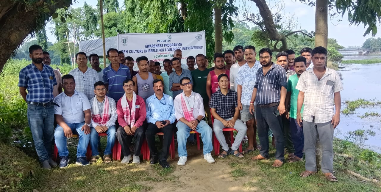 Dr. P Das welcomed the participants and dignitaries for the day-long programme and explained the purpose of the programme. Dr. B. K. Bhattacharjya brief about the details of the successful pen culture demonstration carried out by the Institute in the beel. He also explained about the role of beel fisheries for livelihood improvement of the local fishers. Dr. B. K. Das addressed the gathering and explained about the on-going activities of ICAR-WorlFish collaborative project in West Bengal and Assam.