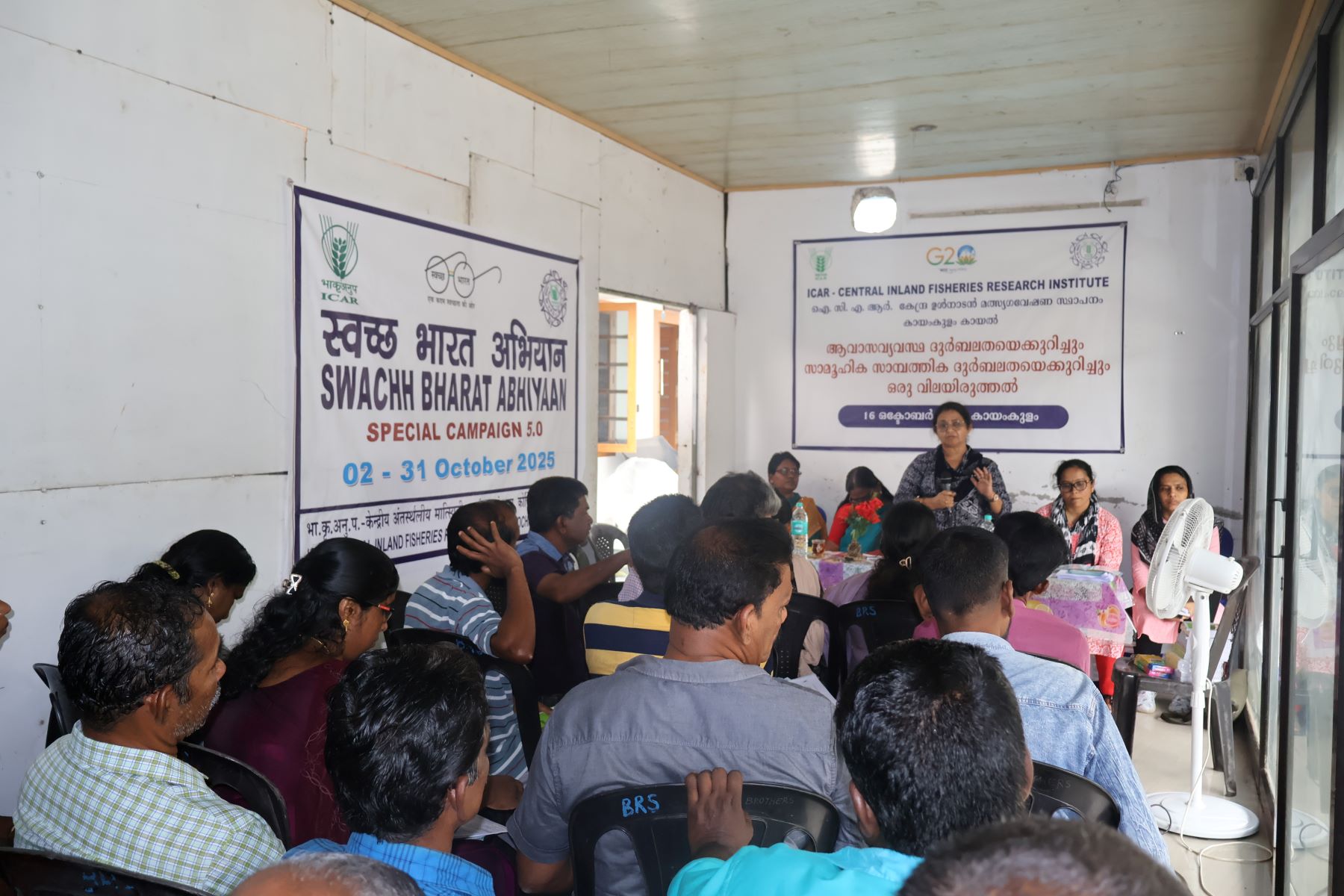 Multi-dimensional vulnerabilities of inland fishers of Kayamkulam estuary was assessed at Choola theruvu , Kayamkulam on 16.10.25. The programme was conducted under the auspices of the project titled 'Fishery resource assessment and ecological monitoring of Kayamkulam Estuary, Kerala for sustainability'.