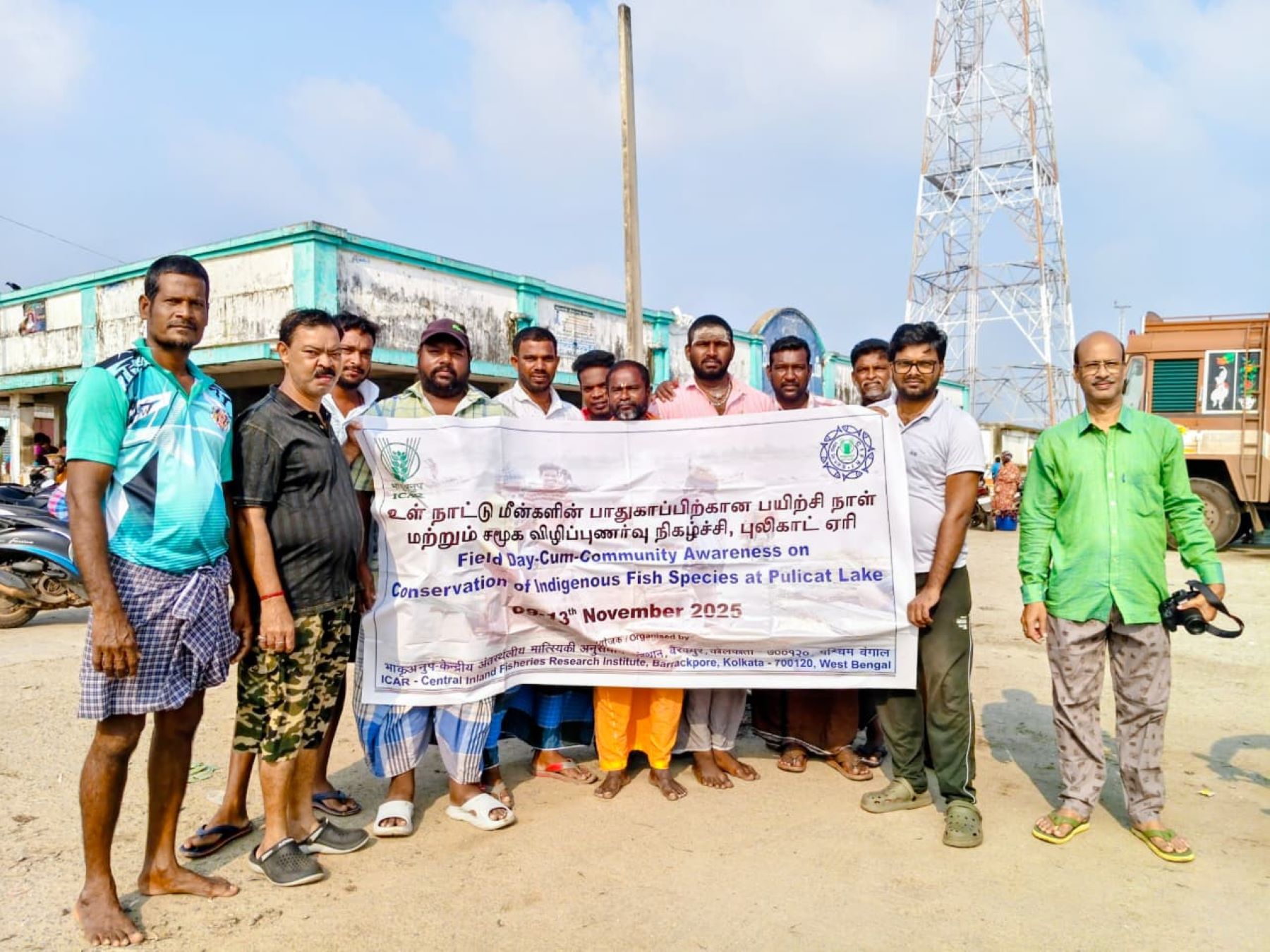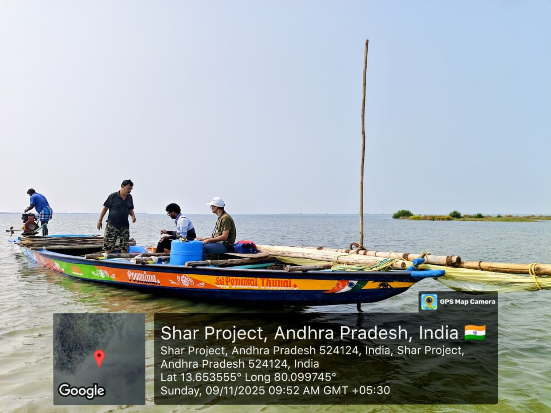 A research team from ICAR-CIFRI, Barrackpore, carried out an extensive ecological and fisheries assessment in Tamil Nadu and Andhra Pradesh parts of the from November 9 to 13, 2025 to document the current state of fish resources, habitat features, and water and sediment qualities under an ongoing research project, "Assessing shifts in fish diversity, environment, and fish stocks in relation to climate change in Pulicat.” The team observed higher water levels, wide variations in salinity across different sites, and low fishing efforts, as compared to those during summer season. Fishing is largely done by fishermen while women play major roles in sorting and sale of the catch. Fishermen use traditional fishing techniques and crafts designed to fit the lake's shallow, low-salinity, and often turbid circumstances.