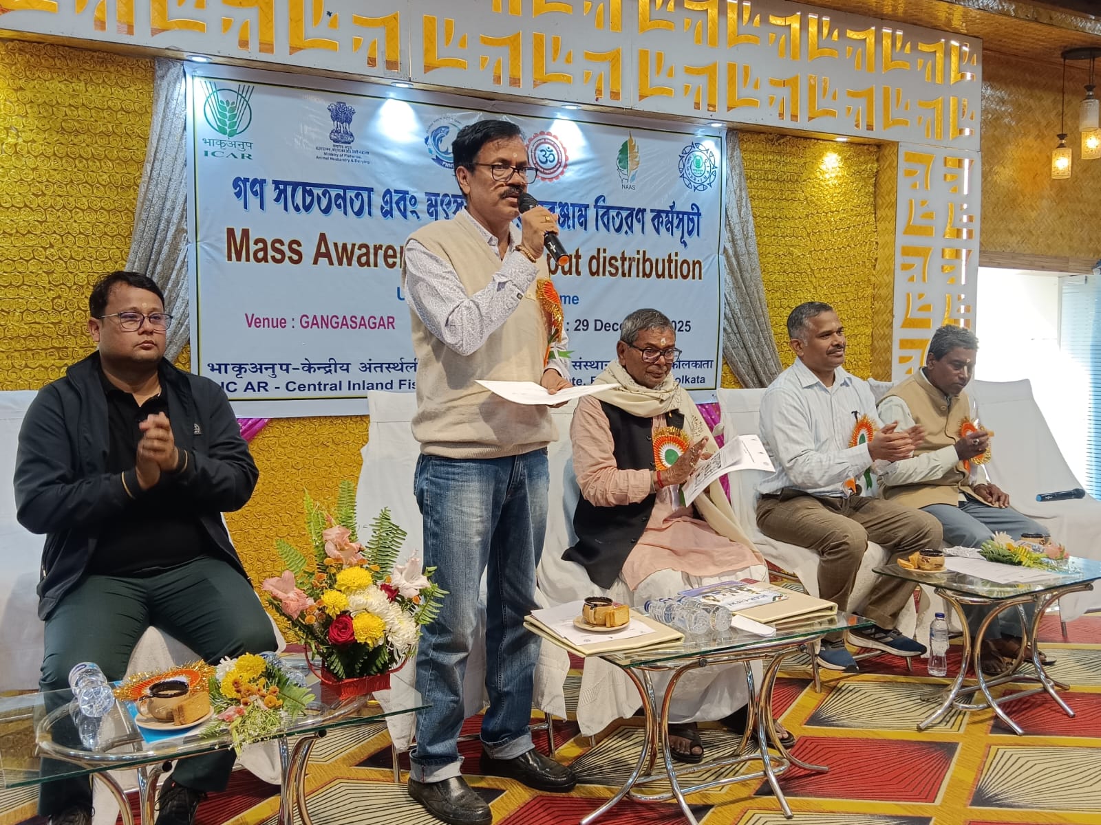 CIFRI scientists Dr. P. K. Parida and Mr. Pranab Gogoi engaged with fish farmers and addressed their queries during the awareness programme held today.Such initiatives underline ICAR-CIFRI’s dedication to inclusive, sustainable, and community-oriented fisheries development. in the Sundarban islands.