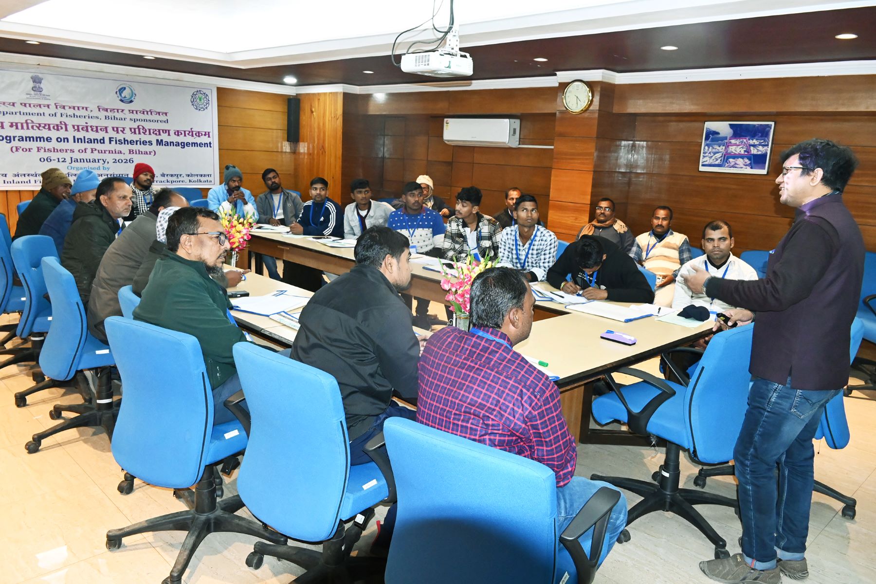 A seven-day training programme on “Inland Fisheries Management” was successfully conducted for 30 fish farmers from Purnea district, Bihar, during January 6–12, 2026. Sponsored by the State Fisheries Department, the programme aimed to strengthen technical knowledge and practical skills of rural fish farmers through scientifically proven best practices for sustainable fisheries development.