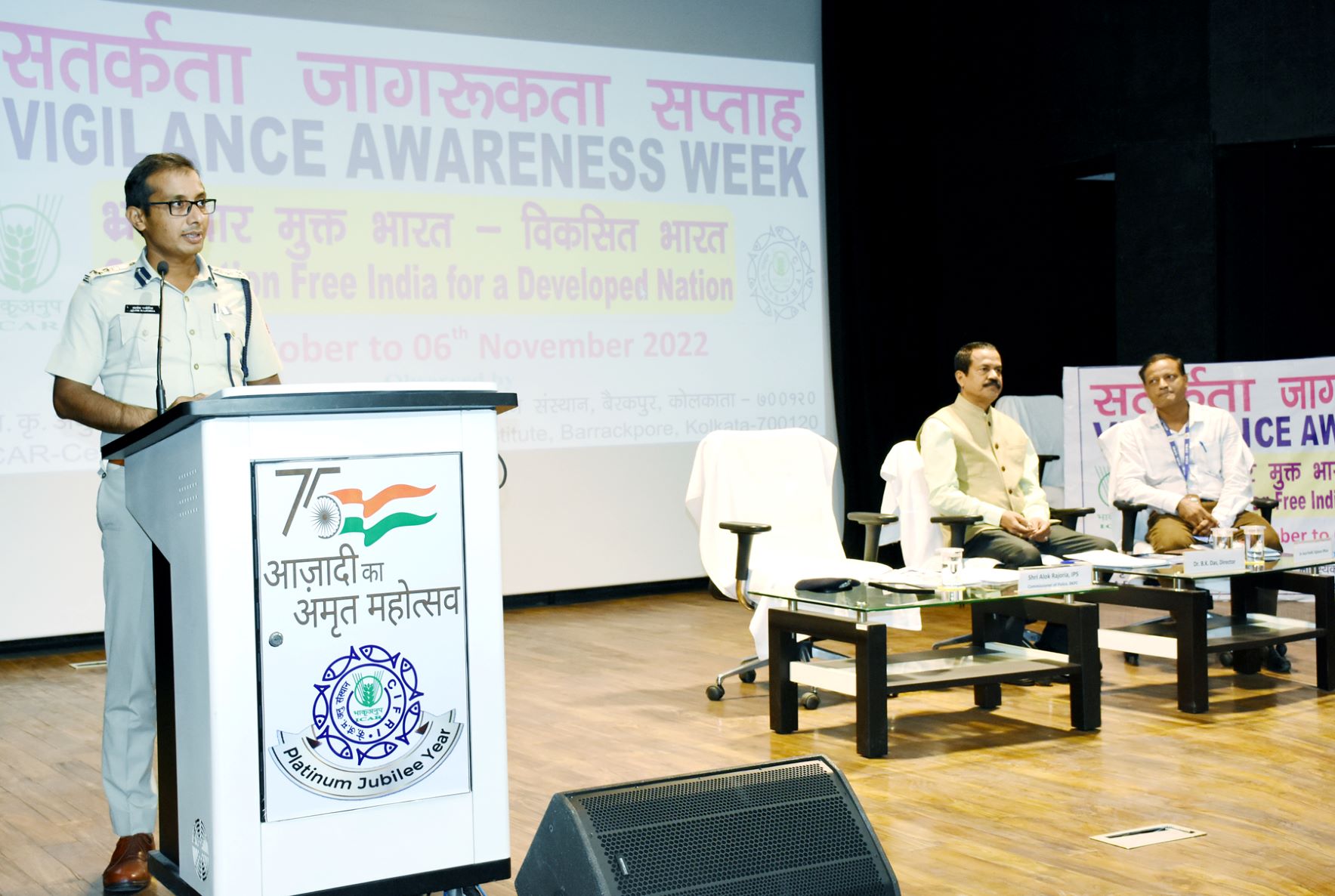 On 02nd November a drawing competition focusing on vigilance was organized for the institute staff. On 03rd November an extempore competition was conducted for the staff, including students, young professionals and other staff. On 04th November an awareness campaign was organized in Douglas Memorial Higher Secondary School, Barrackpore, where Dr. Arun Pandit, vigilance Officer spoke on various issues on vigilance, corruption and integrity. An essay competition was organized for the senior students of the same school. On 5th November a quiz programme was organized for the staff. The week-long celebration was culminated through a concluding ceremony on 07th November in which Shri Alok Rajoria, IPS, Commissioner of Police, Barrackpore Police Commissionerate was the Chief Guest.