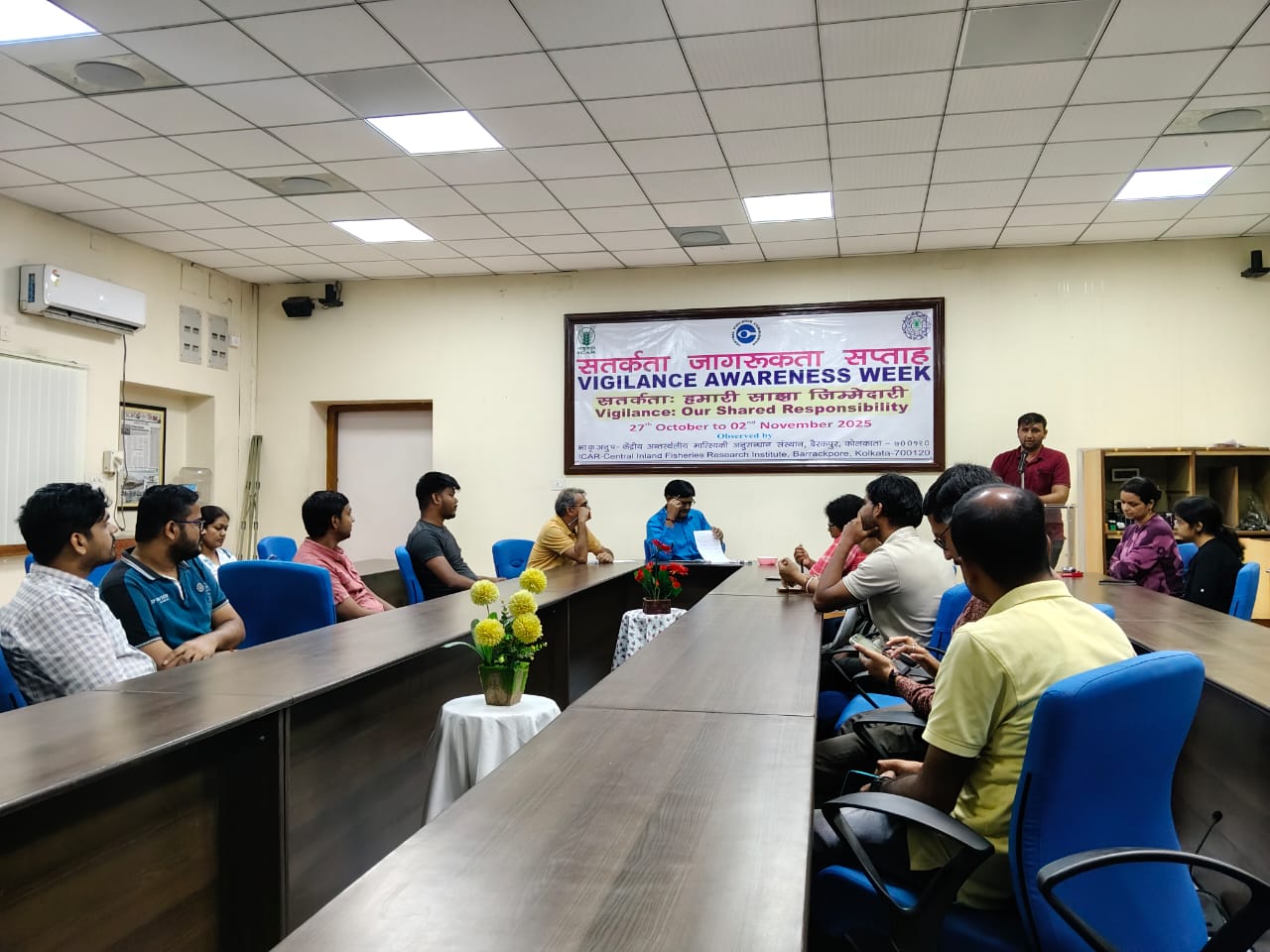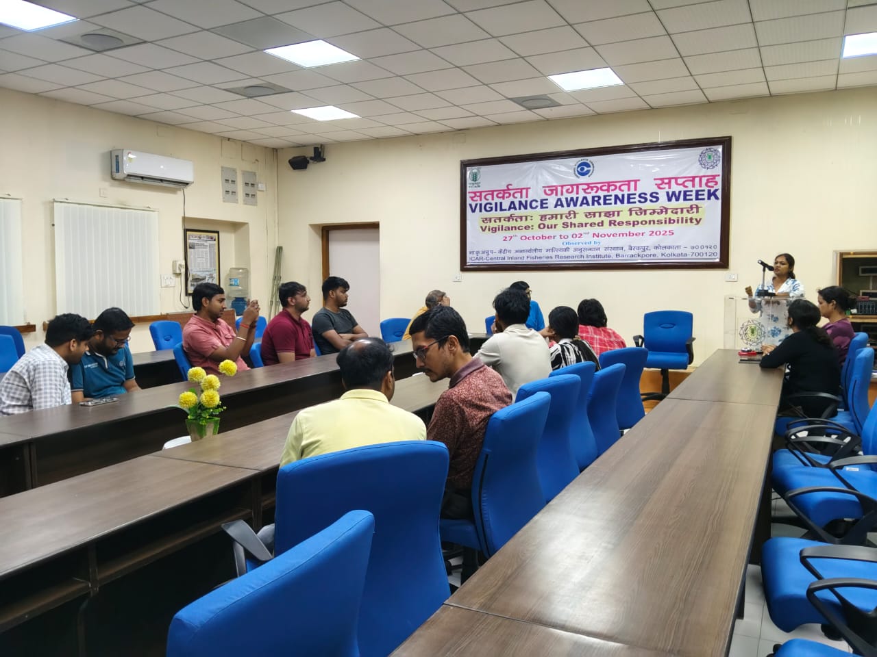 As part of the observance of Vigilance Awareness Week 2025, the ICAR–Central Inland Fisheries Research Institute (ICAR-CIFRI), Barrackpore, organized an Extempore Speech Competition at its headquarters on October 29, 2025. The event saw the active participation of eleven contestants, each delivering an impromptu speech on topics highlighting the significance of vigilance, integrity, and ethical conduct.
