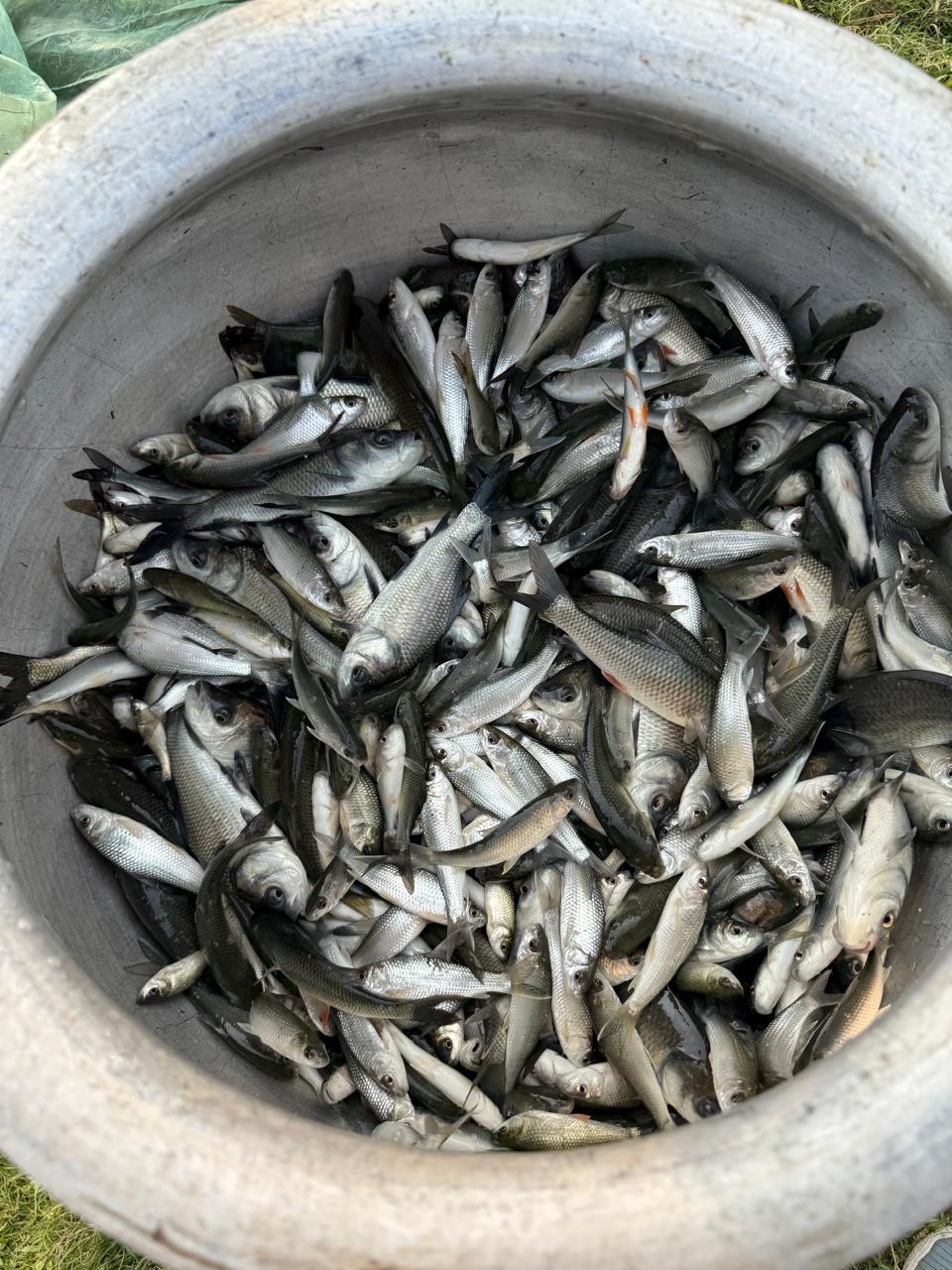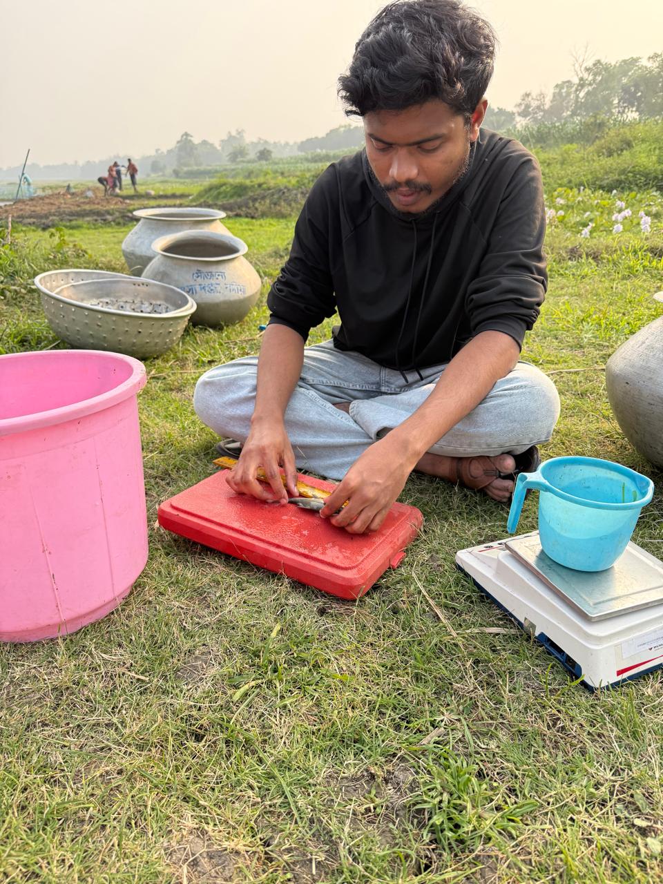 A pen culture demonstration was conducted by stocking 150 kg of fish seed Labeo rohita, Labeo catla, and Labeo bata were stocked in HDPE pens on 12 th December 2025 under the guidance of Dr. B.K. Das, Director, ICAR-CIFRI. The event witnessed participation from over 45 members of the Primary Fishermen’s Cooperative Society of Maniknagar wetland. Scientists and project personnel of ICAR-CIFRI actively engaged with the fishers through hands-on demonstrations and interactive sessions. These activities facilitated the transfer of critical knowledge and technical skills, enabling the fishers to adopt pen culture effectively