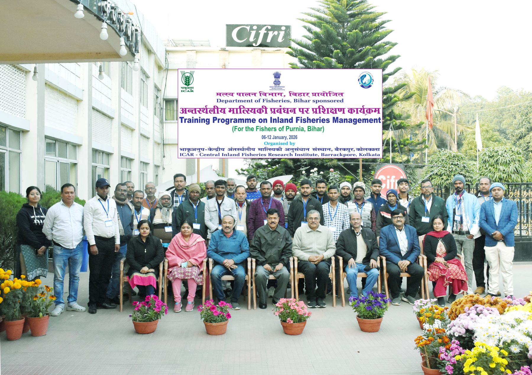 A seven-day training programme on “Inland Fisheries Management” was successfully conducted for 30 fish farmers from Purnea district, Bihar, during January 6–12, 2026. Sponsored by the State Fisheries Department, the programme aimed to strengthen technical knowledge and practical skills of rural fish farmers through scientifically proven best practices for sustainable fisheries development.